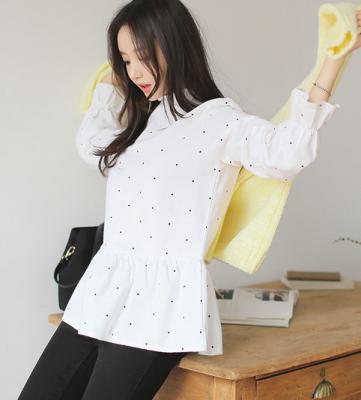 更新 《孙允珠2015.Tom&Rabbit - 2015.12▼SonYounJu▲ 2015.12.23 ┇Tom&Rabbit┇『乳白甜美波点荷叶裙摆衬衫』》