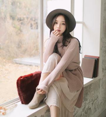 更新 《孙允珠2015.Tom&Rabbit - 2015.12▼SonYounJu▲ 2015.12.25 ┇Tom&Rabbit┇『卡其色螺纹长款高领针织衫』》