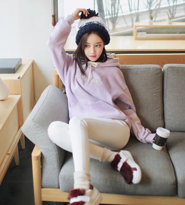 更新 《孙允珠2015.Tom&Rabbit - 2015.12▼SonYounJu▲ 2015.12.25 ┇Tom&Rabbit┇『香芋色卡通字母Q萌版带帽卫衣』》
