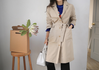 更新 《孙允珠2015.ShesComing - 2015.10▼SonYounJu▲ 2015.10.01 ┇ShesComing┇『欧美极简风卡其色束腰风风衣』》