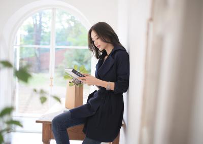 更新 《孙允珠2015.ShesComing - 2015.10▼SonYounJu▲ 2015.10.03 ┇ShesComing┇『藏青色知性OL翻领束腰风衣』》