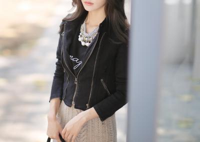 更新 《孙允珠2015.ShesComing - 2015.10▼SonYounJu▲ 2015.10.03 ┇ShesComing┇『黑色复古单宁牛仔拉链外套』》