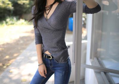 更新 《孙允珠2015.ShesComing - 2015.10▼SonYounJu▲ 2015.10.05 ┇ShesComing┇『深灰色性感紧身V领露肤针织』》