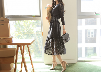 更新 《孙允珠2015.ShesComing - 2015.10▼SonYounJu▲ 2015.10.07 ┇ShesComing┇『初秋FW蕾丝针织花边连衣裙』》