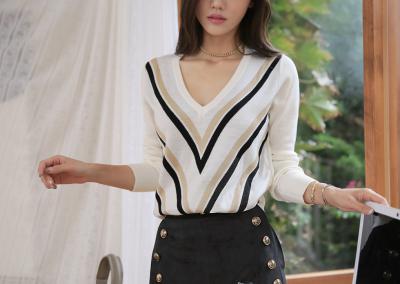 更新 《孙允珠2015.ShesComing - 2015.10▼SonYounJu▲ 2015.10.07 ┇ShesComing┇『初秋皮特时尚条纹V领针织衫』》