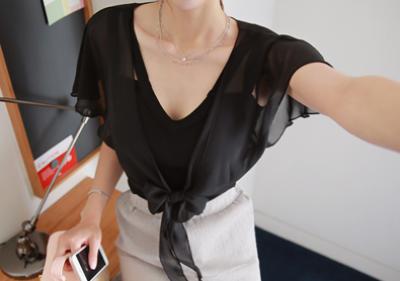 更新 《孙允珠2015.ShesComing - 2015.06▼SonYounJu▲ 2015.06.08 ┇ShesComing┇『黑色知性OL透纱系带雪纺衫』》