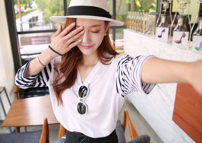 更新 《孙允珠2015.ShesComing - 2015.06▼SonYounJu▲ 2015.06.11 ┇ShesComing┇『夏日V领时尚拼接条纹T恤』》