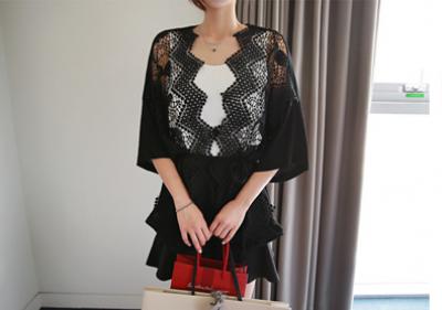 更新 《孙允珠2015.ShesComing - 2015.06▼SonYounJu▲ 2015.06.15 ┇ShesComing┇『黑色镂空雕花透肤罩衫外套』》
