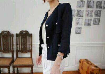 更新 《孙允珠2015.ShesComing - 2015.06▼SonYounJu▲ 2015.06.22 ┇ShesComing┇『普蓝色小香风珍珠纽扣外套』》