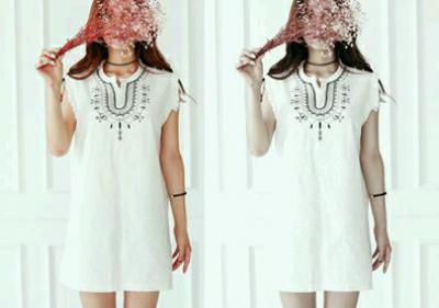 更新 《孙允珠2015.ShesComing - 2015.06▼SonYounJu▲ 2015.06.22 ┇ShesComing┇『刺绣V领中袖磨损撕边连衣裙』》