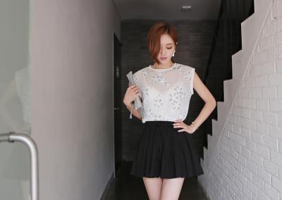更新 《孙允珠2015.ShesComing - 2015.06▼SonYounJu▲ 2015.06.26 ┇ShesComing┇『皮特花边网状镂空无袖衬衫』》