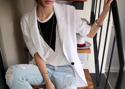 更新 《孙允珠2015.ShesComing - 2015.06▼SonYounJu▲ 2015.06.11 ┇ShesComing┇『夏日知性风V领超薄肩章夹克』》