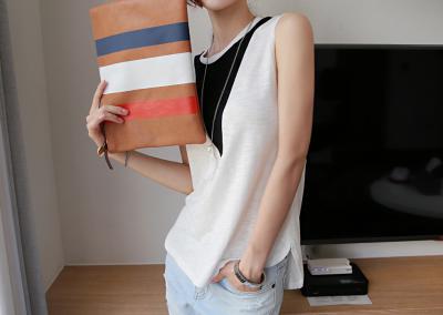 更新 《孙允珠2015.ShesComing - 2015.06▼SonYounJu▲ 2015.06.18 ┇ShesComing┇『圆领拼接彩色条纹背心T恤』》