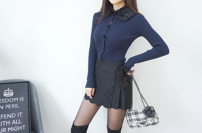 更新 《孙允珠2017.Babi&Pumkin - 2017.12▼SonYounJu▲ 2017.12.08 ┇Babi&Pumkin┇『青石耀蓝深邃螺纹貂领小开衫』》