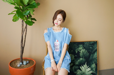 更新 《孙允珠2017.Babi&Pumkin - 2017.05▼SonYounJu▲ 2017.05.31 ┇Babi&Pumkin┇『深湖牛仔缝线毛边斜肩连衣裙』》