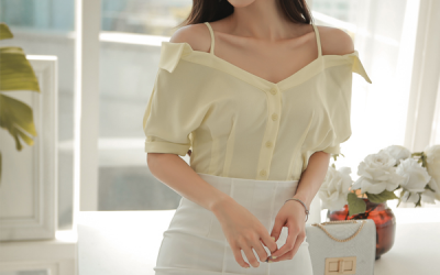 更新 《孙允珠2017.Roer - 2017.05▼SonYounJu▲ 2017.05.16 ┇Roer┇『花摆鹅黄小清新水润抹肩衬衫』》