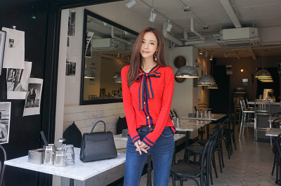 更新 《孙允珠2017.Babi&Pumkin - 2017.09▼SonYounJu▲ 2017.09.22 ┇Babi&Pumkin┇『郁金洋红花园蝴蝶领结针织衫』》