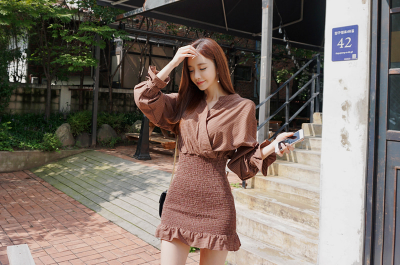 更新 《孙允珠2017.Roer - 2017.09▼SonYounJu▲ 2017.09.10 ┇Roer┇『秋日肉桂苜蓿触笔波纹双扣裙』》