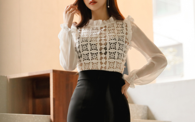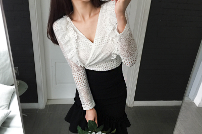 更新 《孙允珠2017.T-nani - 2017.09▼SonYounJu▲ 2017.09.01 ┇T-nani┇『烟雨娇云卷曲绕花镂空褶纹衫』》