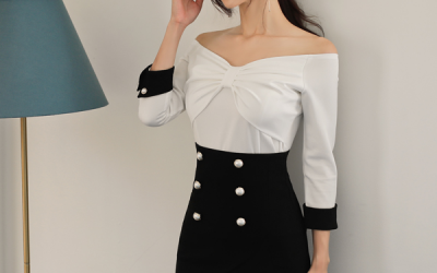 更新 《孙允珠2017.Roer - 2017.09▼SonYounJu▲ 2017.09.23 ┇Roer┇『仙白磨砂镀金纽扣束领斜肩裙』》