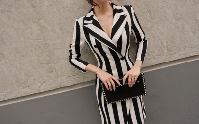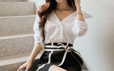 更新 《孙允珠2017.Roer - 2017.09▼SonYounJu▲ 2017.09.15 ┇Roer┇『魔术戏谑黑白竖纹白领西装裙』》