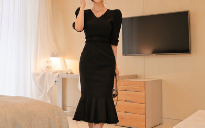 更新 《孙允珠2017.Roer - 2017.09▼SonYounJu▲ 2017.09.11 ┇Roer┇『纯黑修女收腰灯笼宽肩连衣裙』》