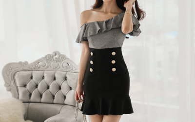 更新 《孙允珠2017.T-nani - 2017.09▼SonYounJu▲ 2017.09.03 ┇T-nani┇『海石墨灰麻色荷叶围领斜肩裙』》