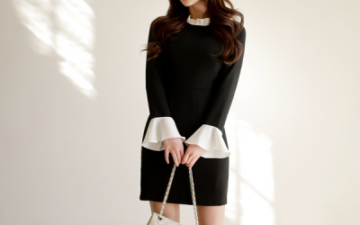 更新 《孙允珠2017.Roer - 2017.01▼SonYounJu▲ 2017.01.26 ┇Roer┇『幻黑古典蝴蝶袖拼接翻呢衣裙』》