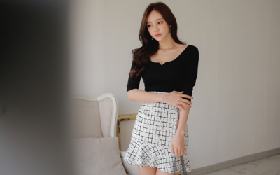 更新 《孙允珠2017.T-nani - 2017.01▼SonYounJu▲ 2017.01.13 ┇T-nani┇『纯白梦幻抹胸镶边点缀职业裙』》