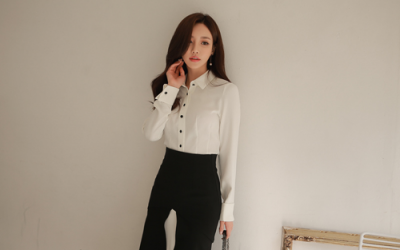 更新 《孙允珠2016.Babi&Pumkin - 2016.10▼SonYounJu▲ 2016.10.10 ┇Babi&Pumkin┇『简单羊皮纸浅底喇叭袖长衬衫』》
