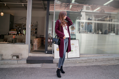 更新 《孙允珠2016.Babi&Pumkin - 2016.10▼SonYounJu▲ 2016.10.07 ┇Babi&Pumkin┇『波尔多酒红沁染针织及膝开衫』》