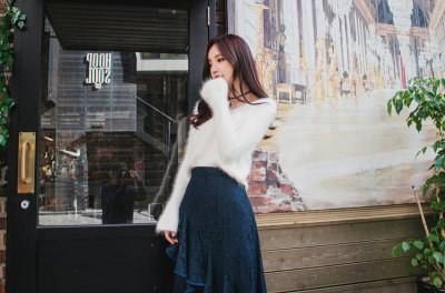 更新 《孙允珠2016.Babi&Pumkin - 2016.10▼SonYounJu▲ 2016.10.20 ┇Babi&Pumkin┇『蕾丝黑色毛呢甜心百搭针织衫』》