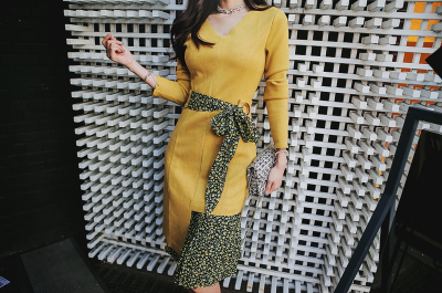 更新 《孙允珠2016.Babi&Pumkin - 2016.10▼SonYounJu▲ 2016.10.20 ┇Babi&Pumkin┇『酸柠深黄杂色碎花束腰拼接裙』》