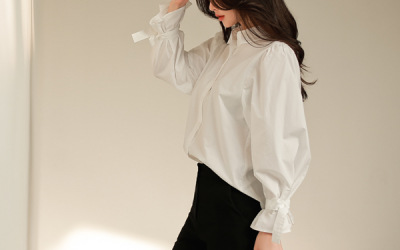 更新 《孙允珠2016.Roer - 2016.12▼SonYounJu▲ 2016.12.12 ┇Roer┇『玻璃瓷蓝清润优雅灯笼袖衬衫』》