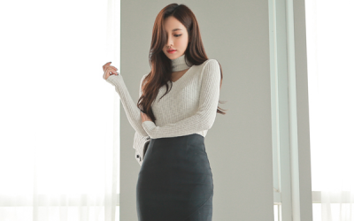 更新 《孙允珠2016.Roer - 2016.12▼SonYounJu▲ 2016.12.20 ┇Roer┇『乔木草灰磨砂拼接职场鱼尾裙』》