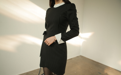 更新 《孙允珠2016.T-nani - 2016.11▼SonYounJu▲ 2016.11.17 ┇T-nani┇『钢琴竖纹时髦抹肩白领雪纺裙』》