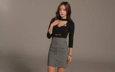 更新 《孙允珠2016.T-nani - 2016.11▼SonYounJu▲ 2016.11.07 ┇T-nani┇『纯黑围领立方镂空斜束职业裙』》