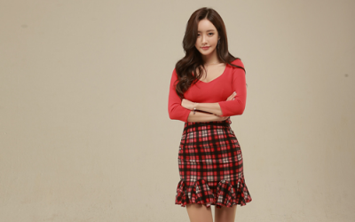 更新 《孙允珠2016.T-nani - 2016.11▼SonYounJu▲ 2016.11.26 ┇T-nani┇『轻熟樱桃朱红衬色呢纹拼搭裙』》