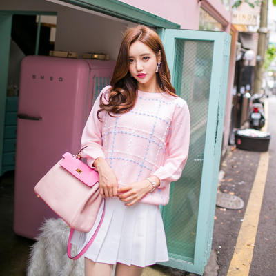 更新 《孙允珠2016.The Pinkpo - 2016.09▼SonYounJu▲ 2016.09.04 ┇The Pinkpo┇『粉蜜蓝白缝线甜心套头针织衫』》