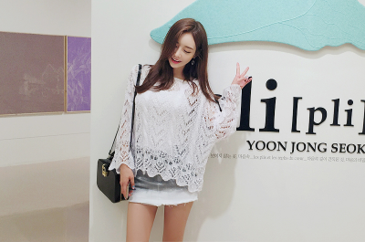 更新 《孙允珠2016.Babi&Pumkin - 2016.08▼SonYounJu▲ 2016.08.03 ┇Babi&Pumkin┇『奶油透气吊袖甜蜜渔网轻罩衫』》