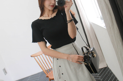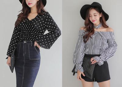 更新 《孙允珠2016.Babi&Pumkin - 2016.08▼SonYounJu▲ 2016.08.21 ┇Babi&Pumkin┇『复古波点条纹露肩衬衫6套』》