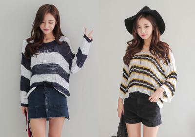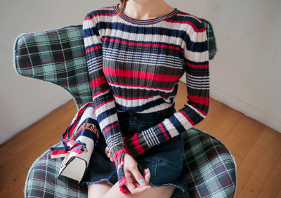 更新 《孙允珠2016.Babi&Pumkin - 2016.08▼SonYounJu▲ 2016.08.21 ┇Babi&Pumkin┇『撞色条纹透视洞眼落肩针织衫』》