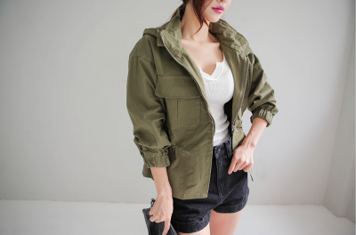 更新 《孙允珠2016.Babi&Pumkin - 2016.08▼SonYounJu▲ 2016.08.23 ┇Babi&Pumkin┇『军绿色保暖修身褶皱夹克外套』》