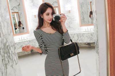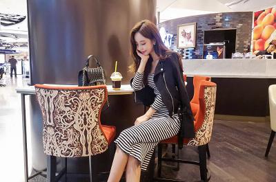 更新 《孙允珠2016.Babi&Pumkin - 2016.08▼SonYounJu▲ 2016.08.31 ┇Babi&Pumkin┇『U领紧致弹力贴身条纹过膝长裙』》