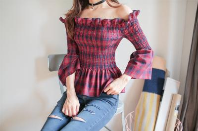 更新 《孙允珠2016.Babi&Pumkin - 2016.08▼SonYounJu▲ 2016.08.31 ┇Babi&Pumkin┇『苏格兰黑加仑拉花露肩撞色格衫』》