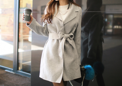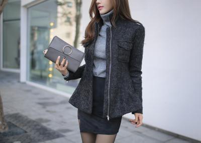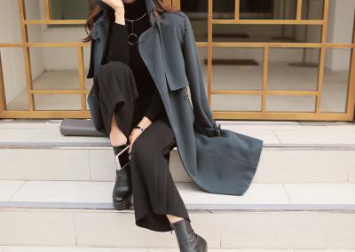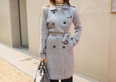 更新 《孙允珠2015.ShesComing - 2015.10▼SonYounJu▲ 2015.10.23 ┇ShesComing┇『墨灰色立领束腰OL呢子风衣』》