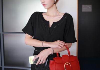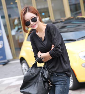 更新 《孙允珠2015.ShesComing - 2015.06▼SonYounJu▲ 2015.06.08 ┇ShesComing┇『黑色镂空V领宽松蝙蝠Tee』》