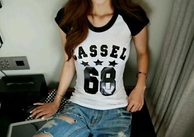 更新 《孙允珠2015.ShesComing - 2015.06▼SonYounJu▲ 2015.06.04 ┇ShesComing┇『简洁可爱彩石装饰字母T恤』》