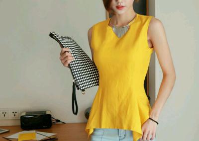 更新 《孙允珠2015.ShesComing - 2015.06▼SonYounJu▲ 2015.06.12 ┇ShesComing┇『明媚鹅黄色无袖燕尾下摆TOP』》