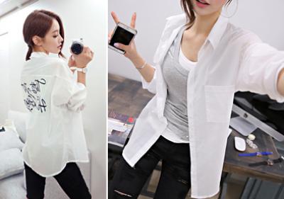 更新 《孙允珠2015.ShesComing - 2015.05▼SonYounJu▲ 2015.05.08 ┇ShesComing┇『韩版花式背印字母微透白衬衫』》